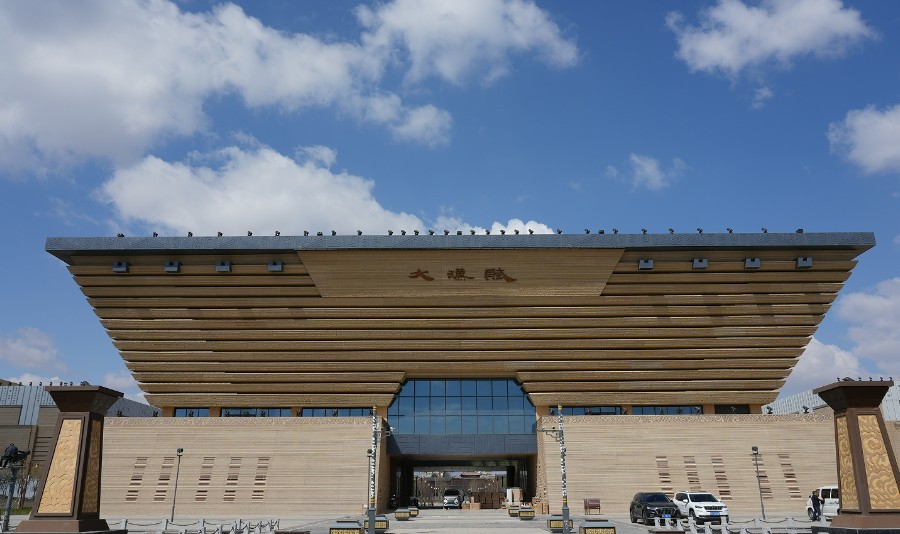 大汉赋体验馆位于景区中轴线上,是整个景区的标志性建筑。大汉赋整体外型设计以汉代高台建筑为启发,以简洁的体块穿插形成大气硬朗的建筑形态,巧妙地将传统建筑文化与时代精神相结合。大汉赋体验馆体验馆引入AR、VR现代技术,通过序厅和六个主展厅,集中展示了两汉时期武威在河西地区的地理位置、礼仪文化、民俗服饰、凉州文化、歌舞书画、军事建筑等,游客可深入体验边塞文化、丝路文化和贤孝文化。在馆内5D影院,游客还可沉浸式体验汉武帝御驾天马亲征沙场的场景。